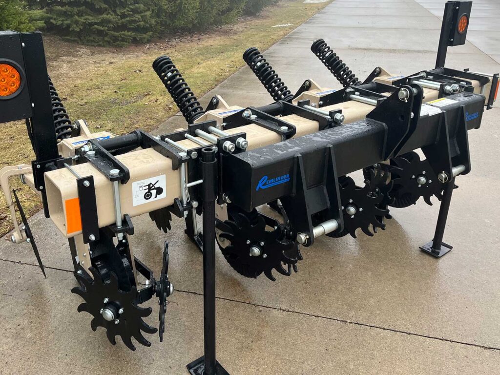 Remlinger Precision Strip Till (PST) row units can be mounted to our Heavy Duty Rigid Toolbar. Our rigid toolbars are made from 7″ x 7″ x 3/8″ wall tubing. The toolbars come standard with a category II & III three-point hitch. Our toolbars have proven to be solid and durable over the years.